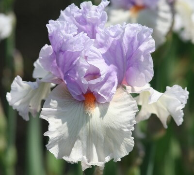 Ирис Belgian Princess отличается голубыми стандартами, покрытыми розовым. Фолы голубовато-белые. Бородки - оранжевые.Сильно гофрирован. Высота цветоноса 99 см. Срок цветения средний.