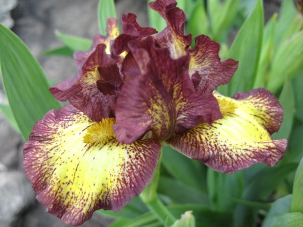Рассада ириса Ringer относится к стандартным карликовым ирисам, которые используют в качестве бордюрных ограждений. Цветок в высоту достигает 25 см, высаживается вперемешку с другими карликовыми сортами. Нижние доли (фолы) по большей части окрашены в лимонно-желтый цвет, по которому проскальзывают черточки темно-сливового оттенка. Широкая кайма наоборот – темно-сливовая с тонкими включениями лимонно-желтого цвета. Верхние доли (стандарты) – практически повторяют расцветку фолов, но доля лимонно-желтого цвета значительно меньше, а темно-сливовый становится основным оттенком. Бородка - желтая с небольшим горчичным оттенком. Сроки цветения очень ранние.