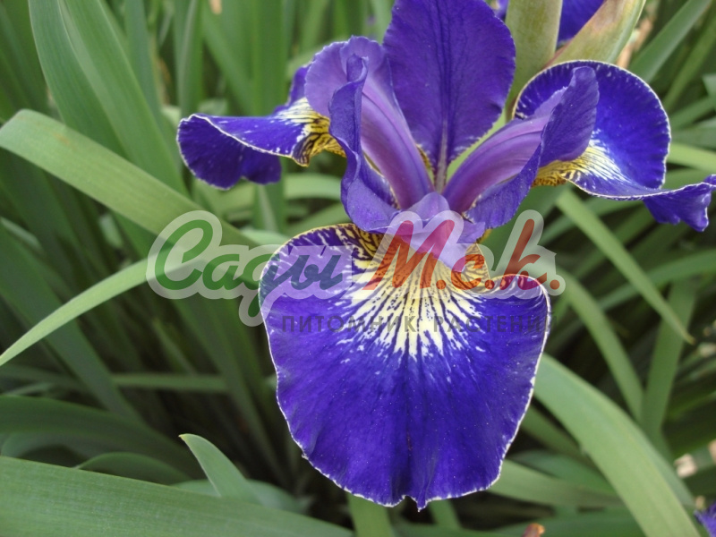 Ирис World Premier порадует вас льдисто-белыми стандартами и таким же ободком на сине-пурпурных фолах. Высота цветоноса 92 см.